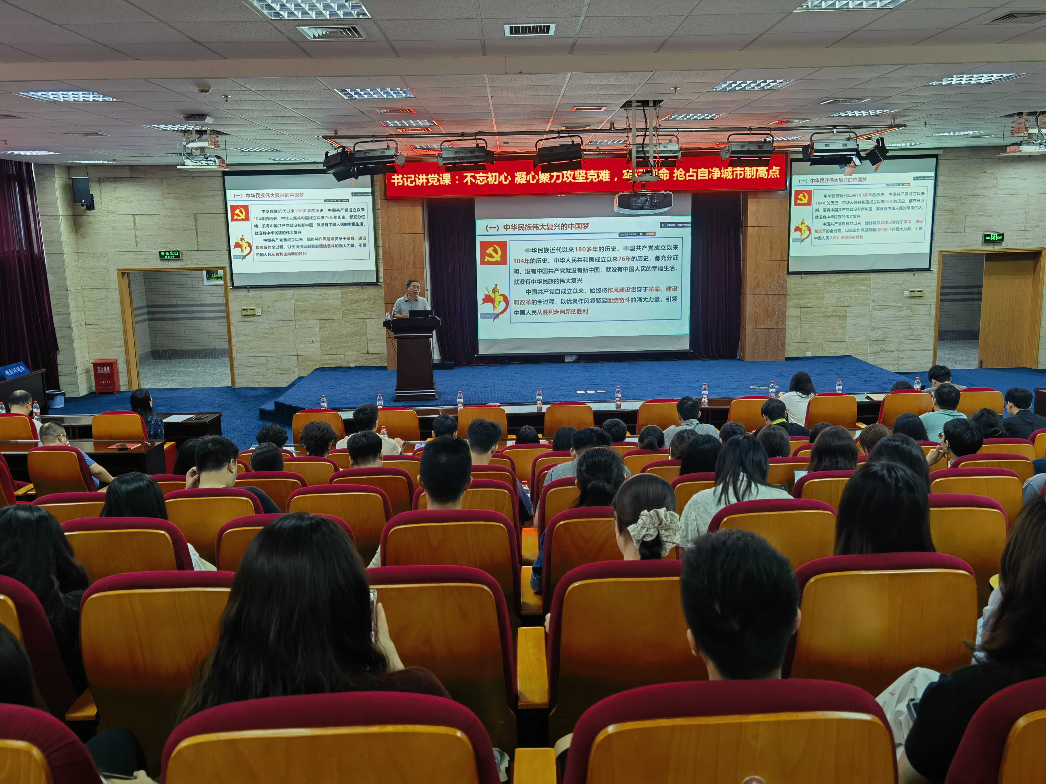郑华从三个方面展开讲授:首先回顾中国共产党百年奋斗历程,强调坚持党的领导是事业发展的根本保证;接着阐述中国科学院作为“国家队”的使命担当,特别是在推动科技自立自强中的先锋作用;最后结合城市所的发展变革,总结了研究所在学科建设、科研平台、人才培养等方面的成果,特别是在“自净城市”科技制高点的创新进展,并重温习近平同志2010年来研究所视察时的嘱托,激励师生坚守科技报国初心。