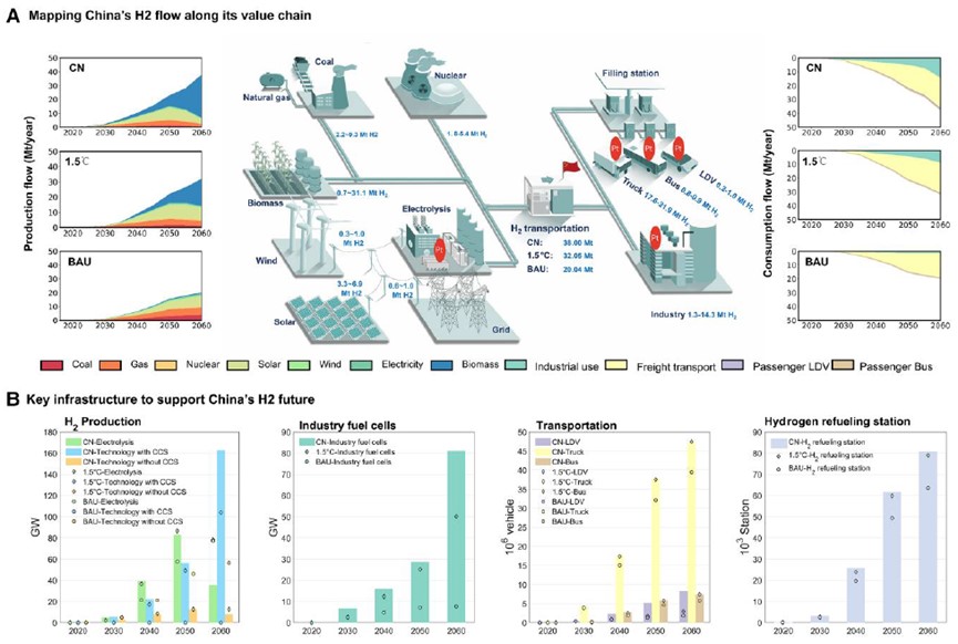 氢能被誉为21世纪最具发展潜力的清洁能源,是可再生能源高效利用的重要载体、抢占未来科技制高点的重要抓手和推动工业低碳转型的关键介质。中国将氢能产业视为实现碳达峰、碳中和目标的重要支撑,并发布了《氢能产业发展中长期规划(2021-2035年)》。铂族金属是电解水制氢和燃料电池的高效催化剂,在氢能基础设施建设中发挥着不可或缺的关键作用。然而,作为全球最大的铂消费国,中国超过95%的铂资源依赖海外供应,这导致中国氢能产业发展极易受到国际铂供应中断的影响。在此背景下,厘清铂资源-氢能-碳中和系统关联关系及解耦策略,对规避潜在供应风险及促进氢能产业安全高质量发展至关重要。
