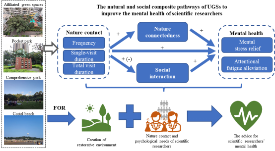 心理健康已成为后疫情时代全球各地区日益凸显的社会性问题。心理疾病严重危害人的健康,降低生产力,影响生活品质。科研人员具有工作时间长、工作难度高,长期面临高强度的脑力劳动与职业竞争的特征,其心理健康问题却仍没有得到足够的关注。城市绿色空间能使人们更好地消除心理疲劳以及压力,提升积极情绪,促进体力与社交活动,然而城市绿色空间对科研人员心理健康的作用机制尚未得到充分认识。