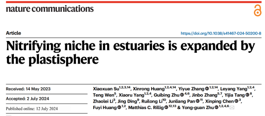 研究人员发现,在河口生态系统中,塑料际可能是一个被低估的硝化作用的生态位,揭示塑料际上细菌介导的硝化活性高于其他生物膜(如石头、木头和玻璃生物膜)和周围水体0.9~12倍的。活跃的硝化微生物的生态位分化以及潜在的底物交换合作模式可能是提升塑料际硝化潜势的原因。该项研究工作得到国家自然科学基金委员会创新群体项目(No. 42021005),国家重点研发专项课题(No. 2022YFD1901402)以及宁波顶尖人才计划(No. 2021-DST-004)等项目的资助。