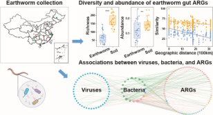 蚯蚓在调节土壤生态过程方面起着关键作用,其肠道能够过滤土壤中的微生物和抗生素抗性基因(ARGs)。然而,蚯蚓肠道ARGs的大尺度空间分布模式及其主要驱动因素仍然不清楚。