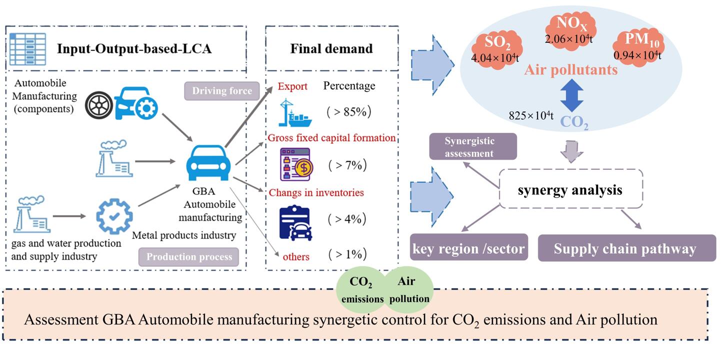 相关研究成果以Synergetic control analysis of CO2 and air pollutants in the automobile manufacturing industry in Guangdong-Hong Kong-Macao Greater Bay Area: The supply chain perspective为题发表在国际期刊Journal of Cleaner Production上。硕士研究生刘明亮为第一作者,林剑艺研究员和尹晶晶助理研究员为共同通讯作者。该研究得到国家重点研发计划项目(2022YFF1301204)、国家自然科学基金(42305110)和中国科学院城市环境研究所项目(IUE-JBGS-202209)的资助。?