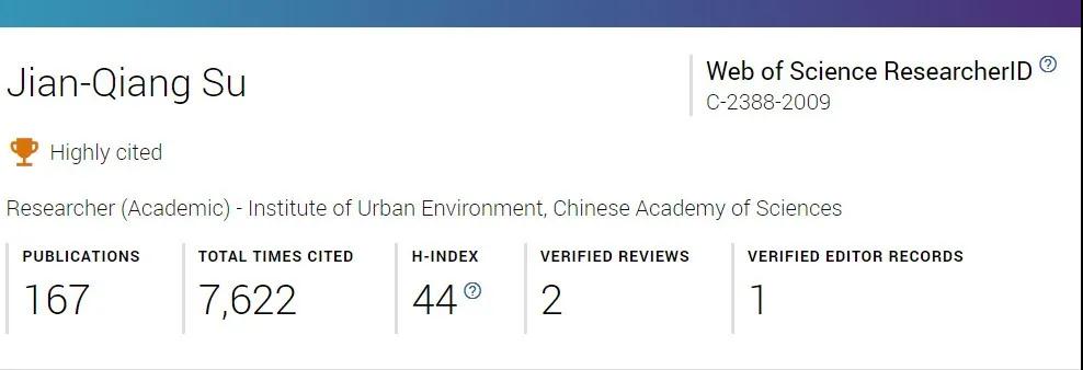 11月16日,科睿唯安发布了2021年度全球“高被引科学家“榜单,中国900多人次入选。入选这份榜单的科学家过去十年均发表了多篇高被引论文,这些论文的被引频次在 Web of Science 中位于同学科、同发表年份的前1%,彰显了他们在同行中的重要学术影响力。朱永官院士入选“环境与生态学”榜单,苏建强研究员入选“交叉学科”榜单。