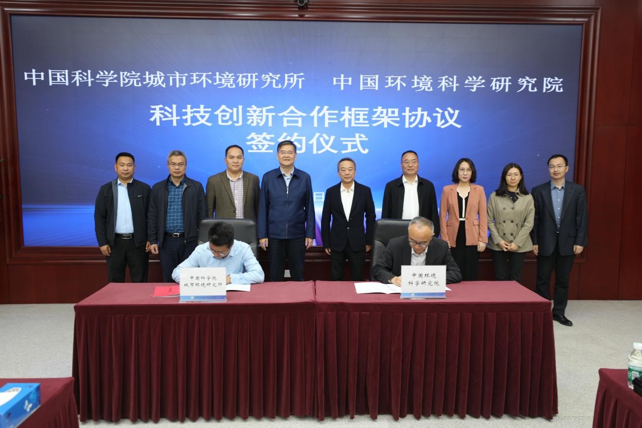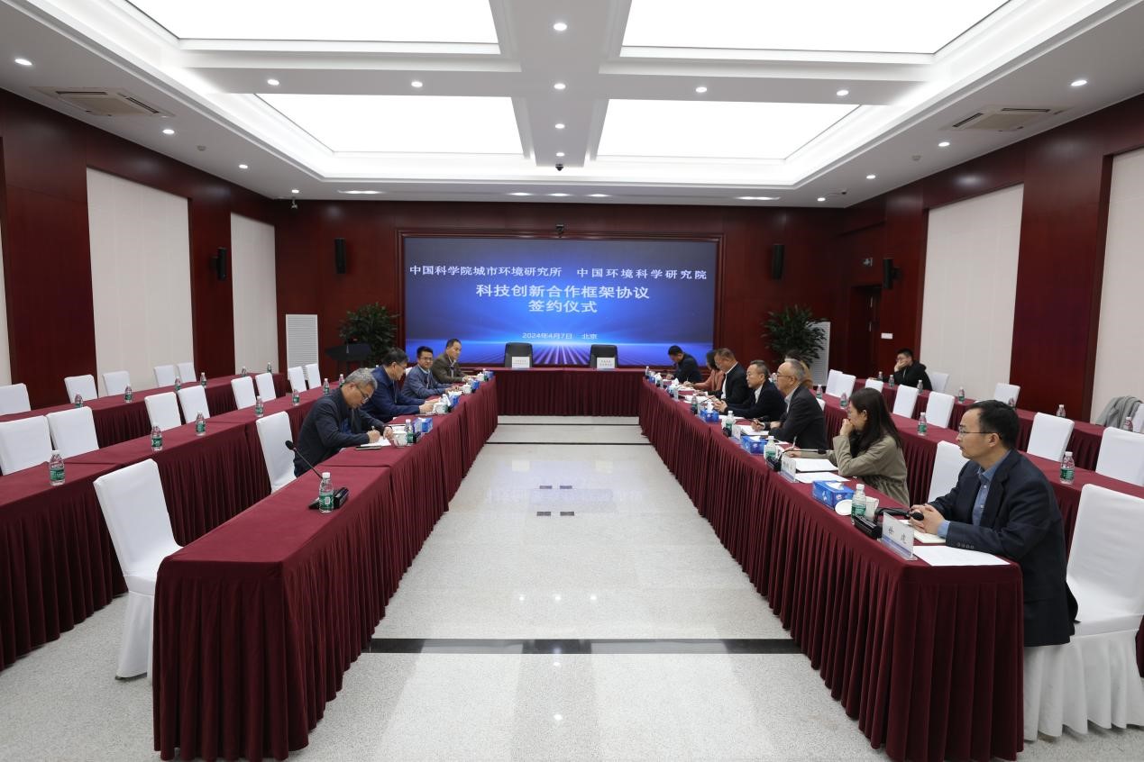 4月7日,中国工程院院士、城市环境所所长贺泓率队访问中国环境科学研究院,并与中国环境科学研究院举行科技创新合作框架协议签约仪式。城市环境所副所长郑煜铭、中国环境科学院副院长许其功分别代表双方签约,城市环境所所长贺泓、中国环科院院长李海生、总工徐义生等见证了签约仪式。